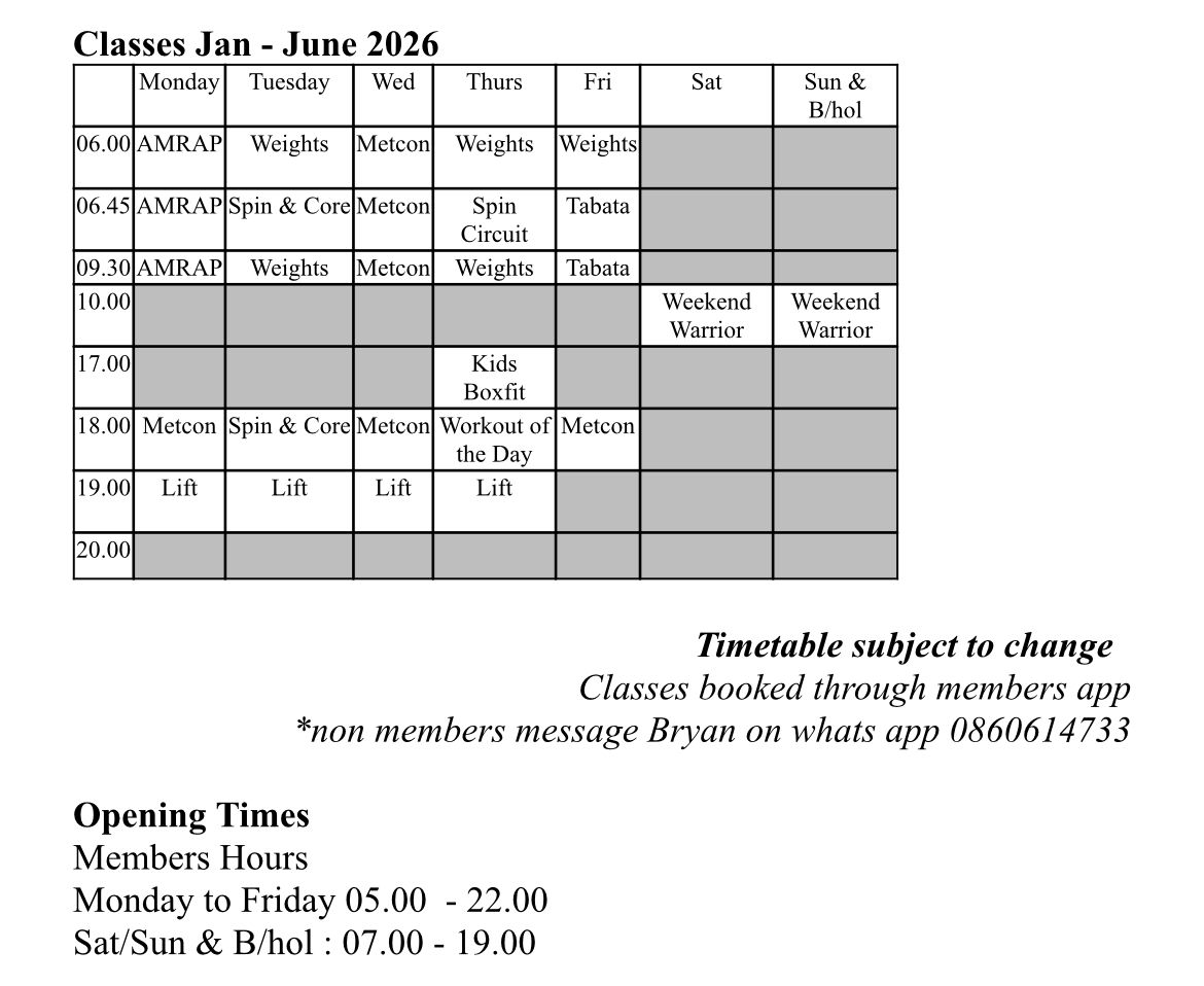 “Workout Of the Day” can include many different exercises, routines and personal challenges. Each class will be different from the last and will be body weight, strength, endurance or cardio focused, including kettlebells and barbell. Class length is however long it takes you to complete. So if it takes you 20 minutes, then your class is only 20 minutes, but you will earn that 20 minutes.
